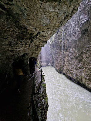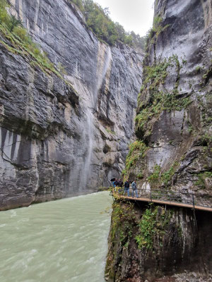 Nachdem wir Samstagmorgens in der Früh alle unsere Instrumente in den "Car" geladen hatten, ging es dann auch schon Richtung Meiringen zur Aareschlucht. Kaum dort angekommen, machten wir uns auf direktem Weg ins Gestein. Bei einem Spaziergang über die errichteten Stege durch die Schlucht, konnten wir dann (leider bei Regen) schöne Aussichten geniessen. Die Felsen waren sehr beeindruckend und die Wasserfälle alle paar Meter waren noch das I-Tüpfelchen oben drauf. Durchnässt am Ende angekommen, haben wir uns im Restaurant Aareschlucht noch flüssig gestärkt.