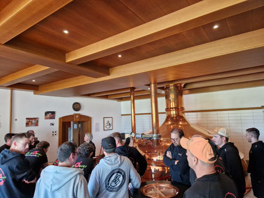 Nach einigen sprudligen Getränken, machten wir uns auf den Weg Richtung Matten bei Interlaken zur Rugenbräu Brauerei. Da ging es dann erstmals ins Restaurant Brauistübli, wo wir zu Mittag gegessen und gleichzeitig auch schon die erste "Hopfenschorle" degustierten.